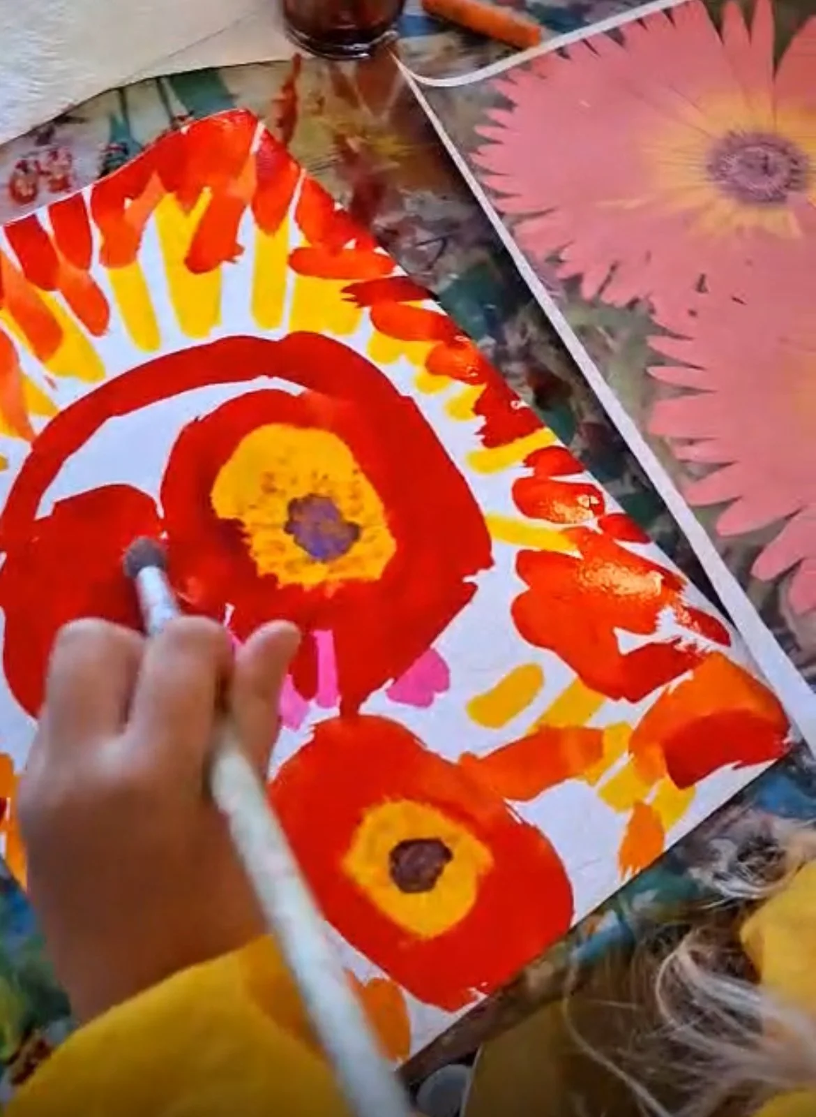 O’Keeffe staat bekend om haar kleurrijke bloemen, bijzondere landschappen en krachtige vormen. In de les laten we ons inspireren door haar kunst en maken we onze eigen grote, expressieve schilderijen vol kleur en detail.